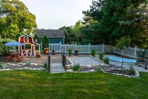 At ChicoryDoorCounty, we believe vacationing with kids should be fun, not stressful. We’ve created a unique, natural outdoor play area including a real sunken rowboat for pretend play, a dry riverbed, a pea-gravel truck/digging area, and an adorable barn playhouse with hand-carved wooden farm animals to “feed”.