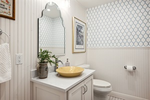 •The second-floor Queen suite has a Queen bed and a newly remodeled bathroom with a tub/shower combination and a gorgeous single vanity.
